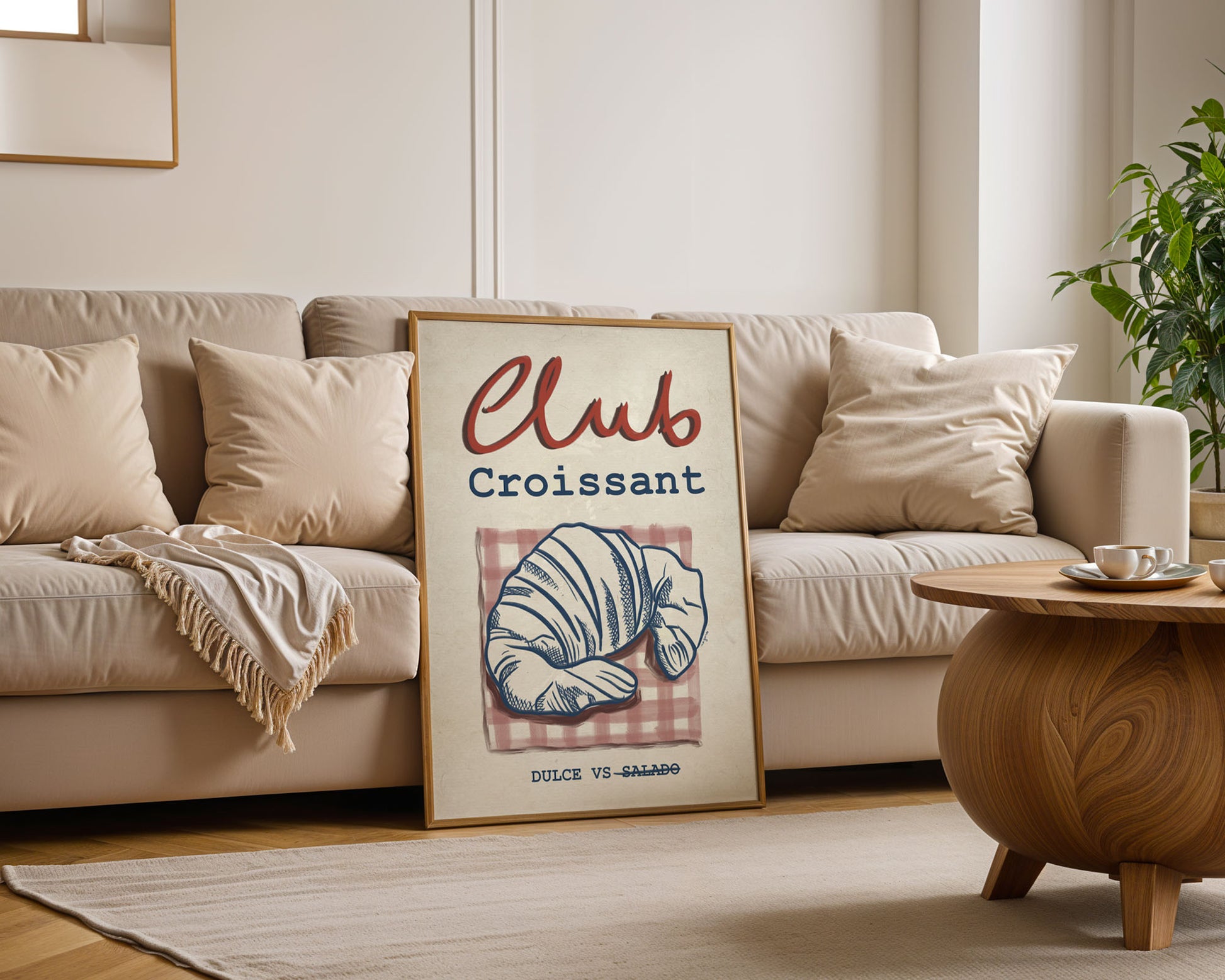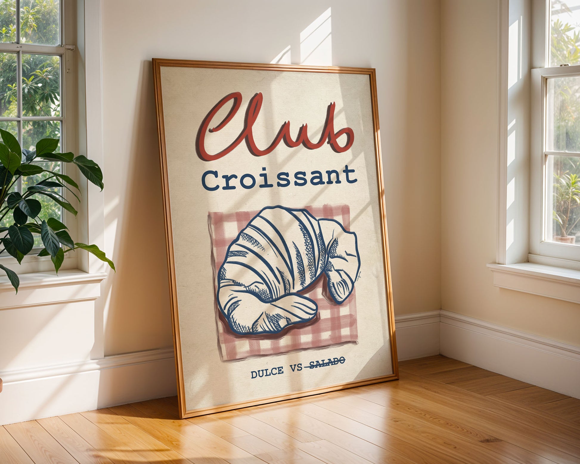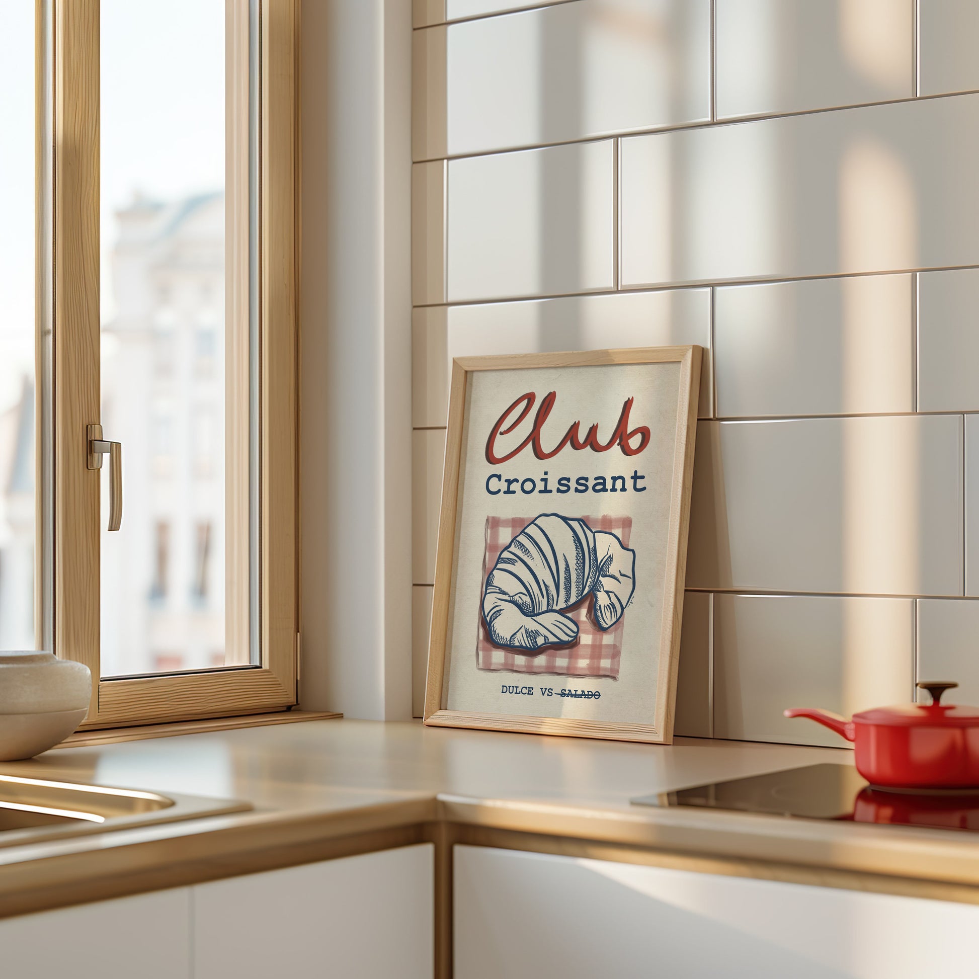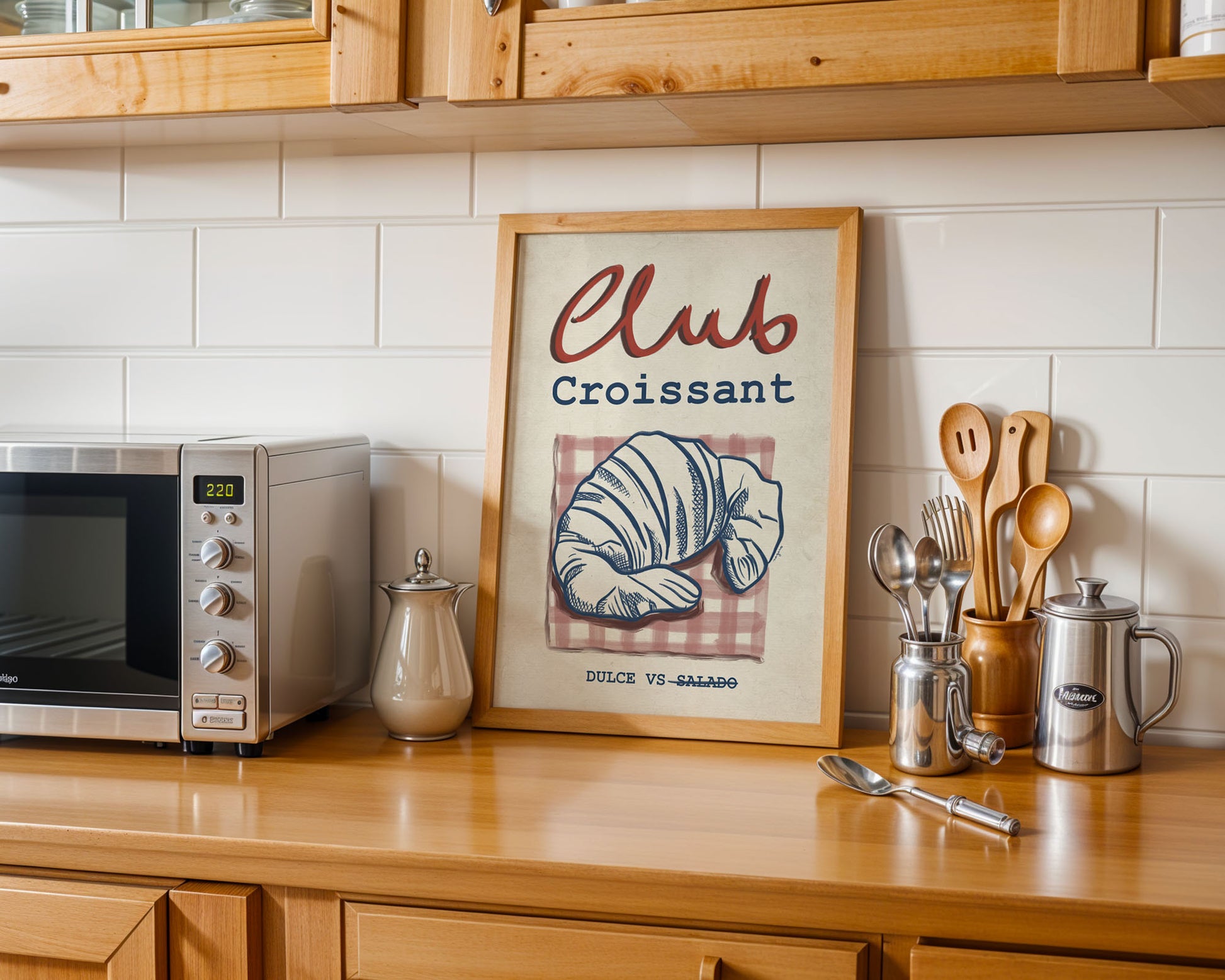 Para fans del cruasán en todas sus versiones: dulce, salado o los dos. Una lámina con aire francés y aroma a desayuno perfecto.