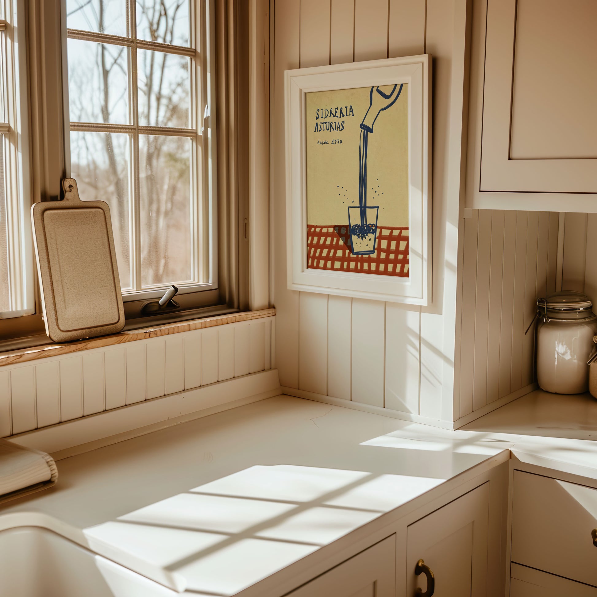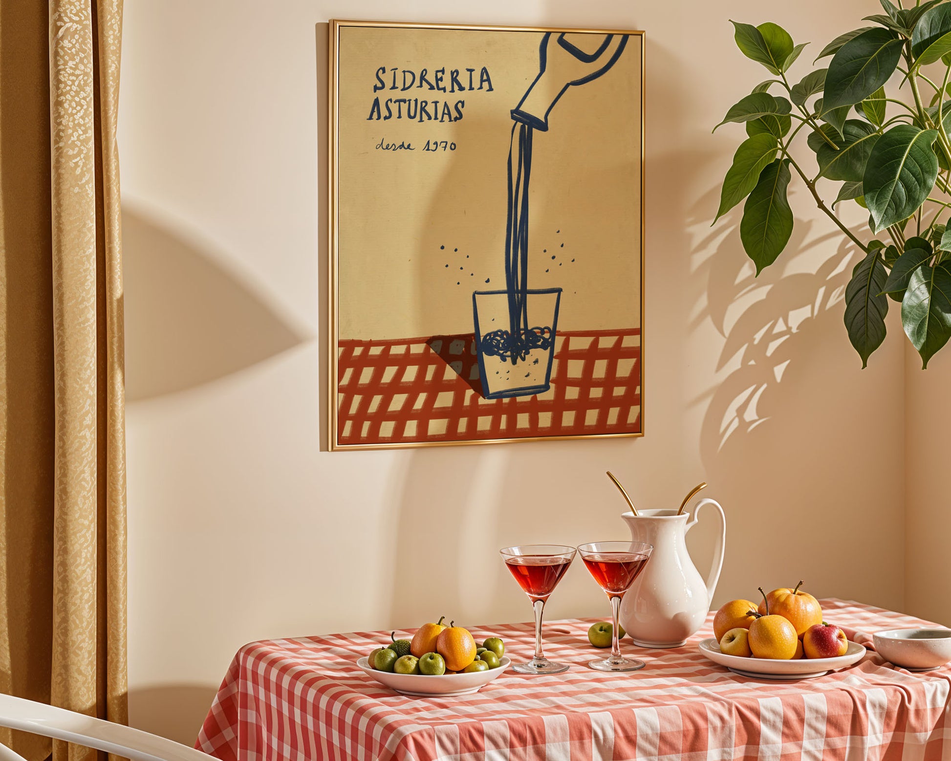 Una ilustración dedicada al arte de escanciar y a la tradición sidrera asturiana. Ideal para casas donde se honra el norte con orgullo y vasos llenos.